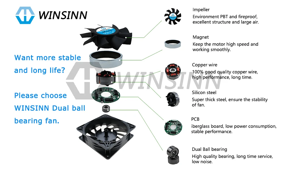 ►Dual ball bearing, service life of more than 50,000 hours, suitable for long-term continuous high-intensity work.