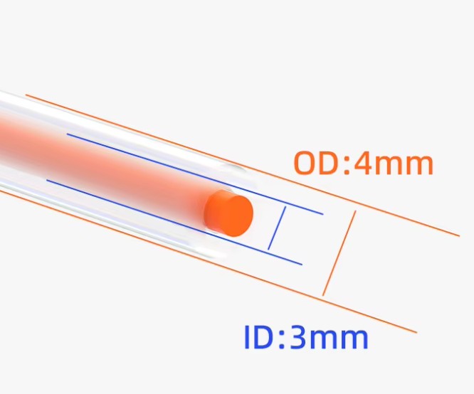 The function of PTFE Tube is to reduce resistance and guide filament. The tube’s inner diameter is 3.0mm, and its outer diameter is 4mm.