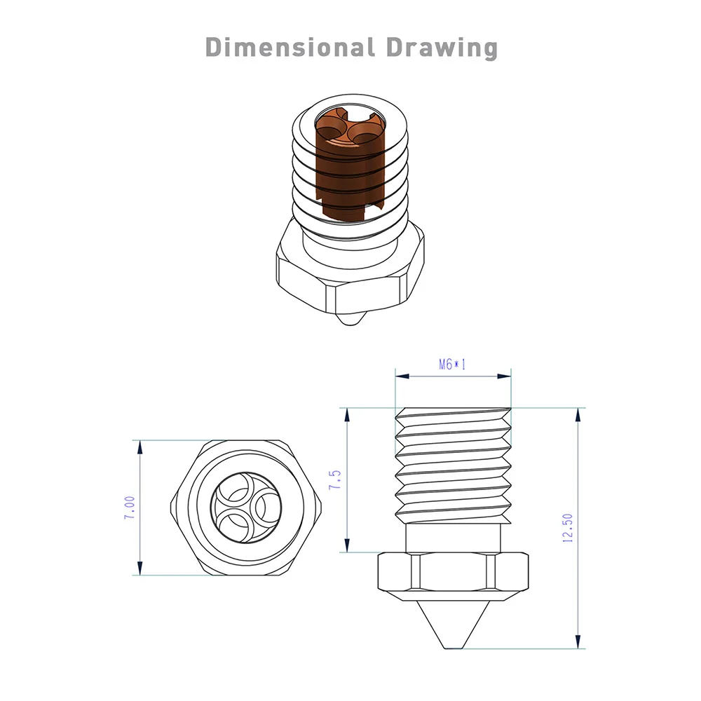 This nozzle fit for E3DV6/ PRUSA i3 /MK3/ MK3S /MK2/2.5 Voron 3D Printer Hotend